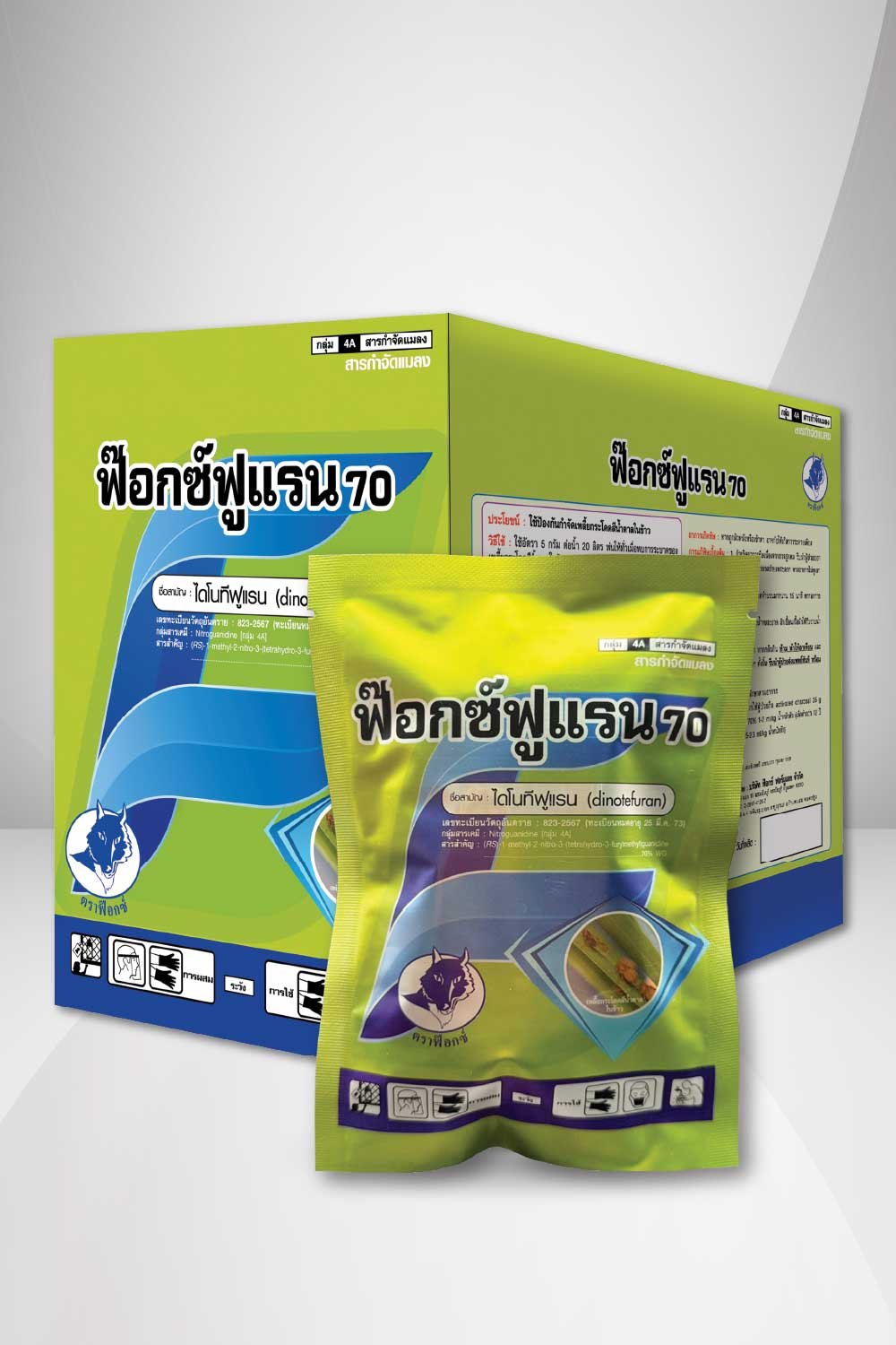 วิธีใช้ : ใช้อัตรา 5 กรัม ต่อน้ำ 20 ลิตร พ่นให้ทั่วเมื่อพบการระบาดของเพลี้ยกระโดดสีน้ำตาลในข้าวมากกว่า