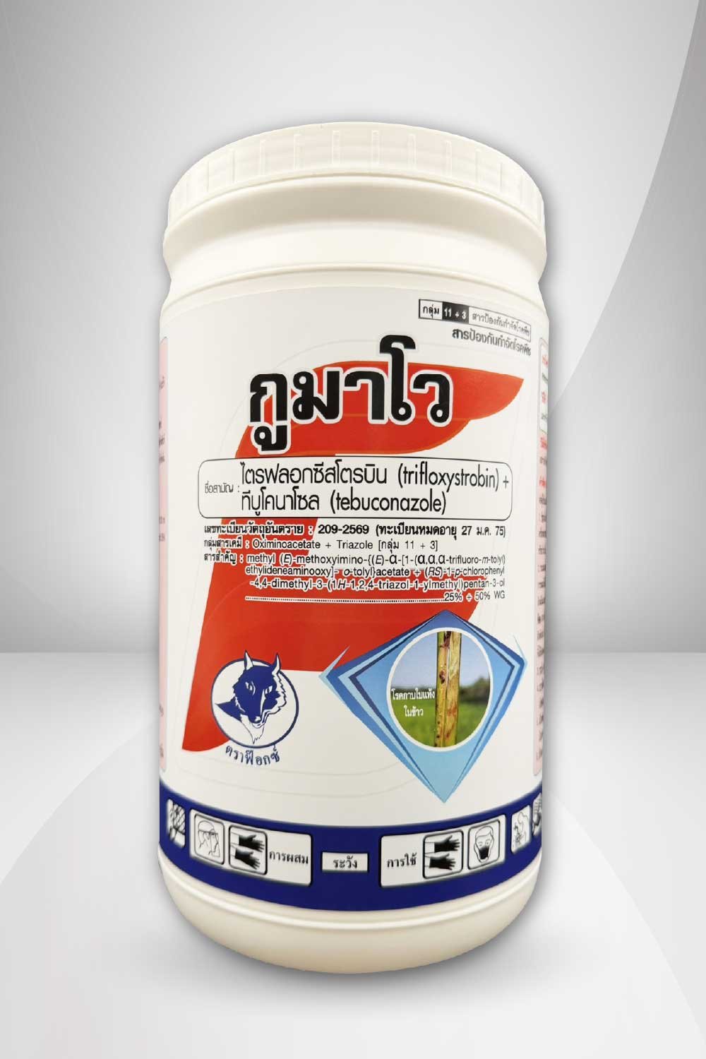 ชื่อสามัญ : ไตรฟลอกซีสโตรบิน + ทีบูโคนาโซล 25% + 50% WG